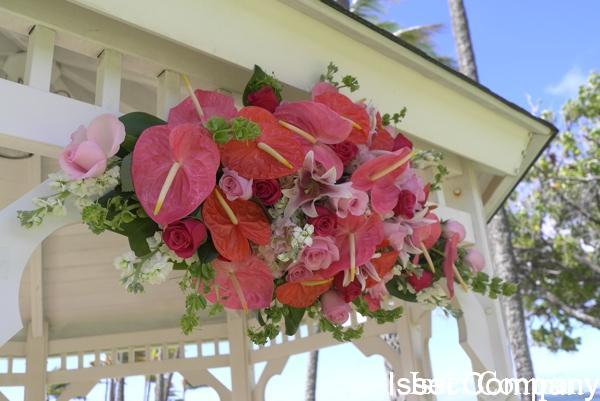 ピンク系のトロピカルにオレンジを挿し色で飾りました。