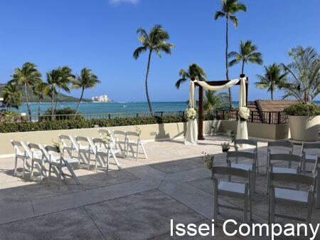 ハウテラスのテラスは、ワイキキビーチと、ダイヤモンドヘッドが一望できる、ハワイらしさ満点の会場です。