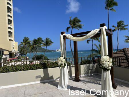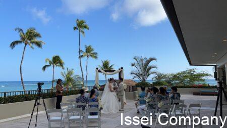 お天気最高で、日差しがきつかったですが、挙式の時間にはテラス・ラナイ全体が日陰になり、快適な状況でした。