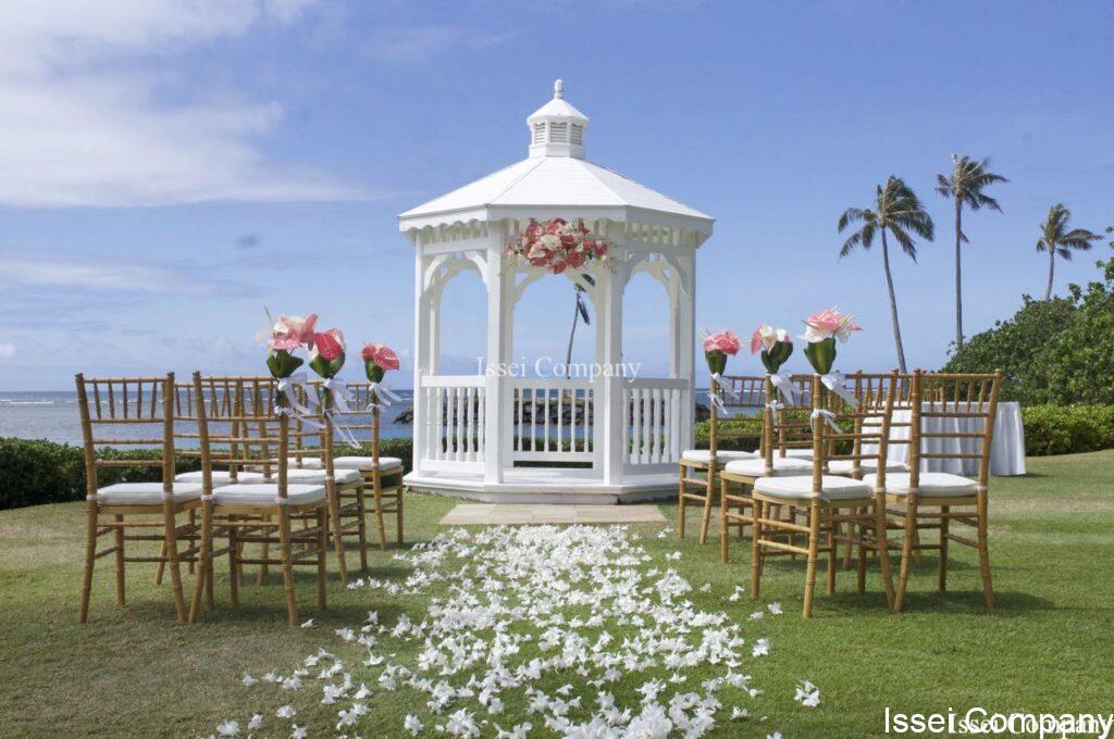 挙式は、カハラ・ダイヤモンドガゼボ11am 、レセプションはオケカイで12pmからでした。