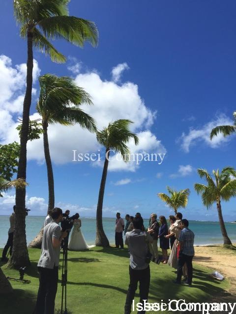 まずは良く晴れたワイアラエビーチでの挙式風景。