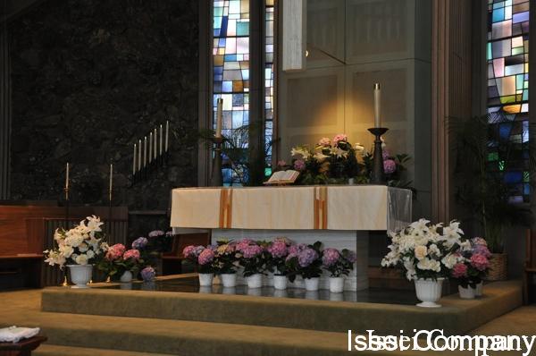 色とりどりのアジサイで祭壇は、可愛らしく飾られました。