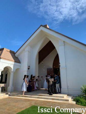 挙式後のフラワーシャワーは、チェペルの入り口付近です。