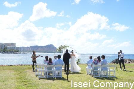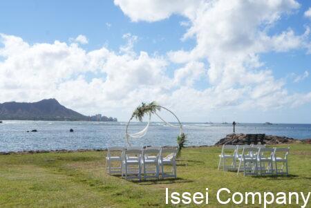 ワイキキから至近でアクセスもよく、ビーチフロントで、ダイヤモンドヘッドに向かって歩く、という贅沢なウェディングです。