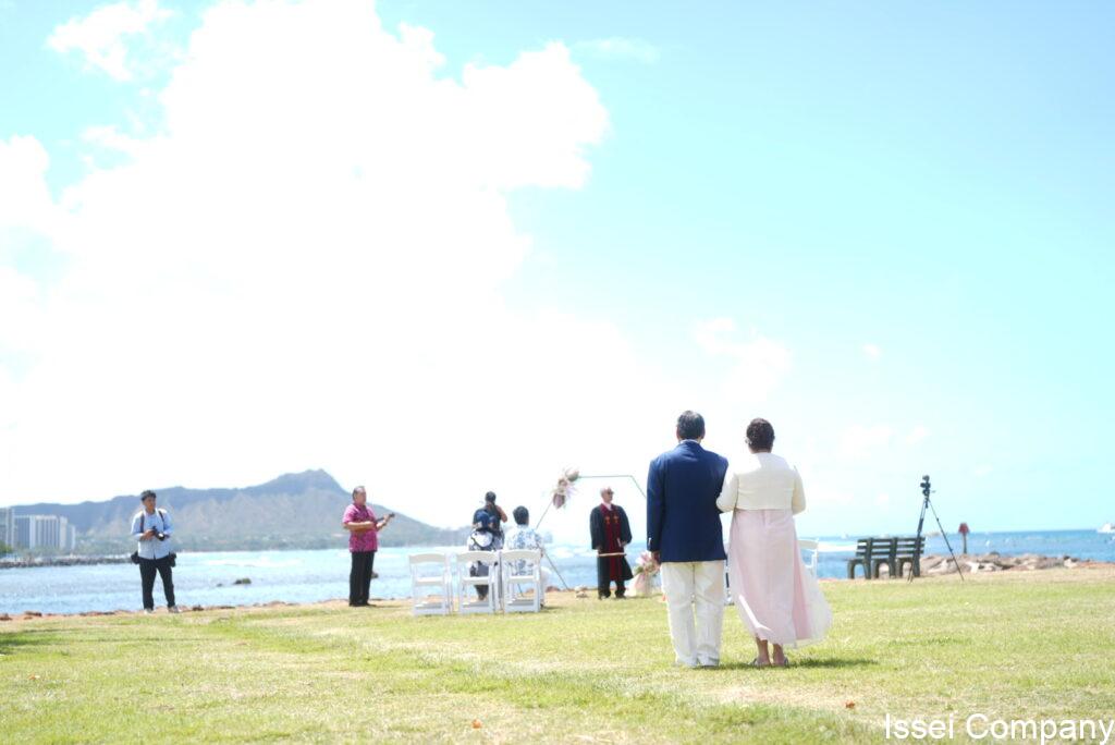 ハワイの海と、その先のダイヤモンドヘッドを望みながらの挙式は格別です。