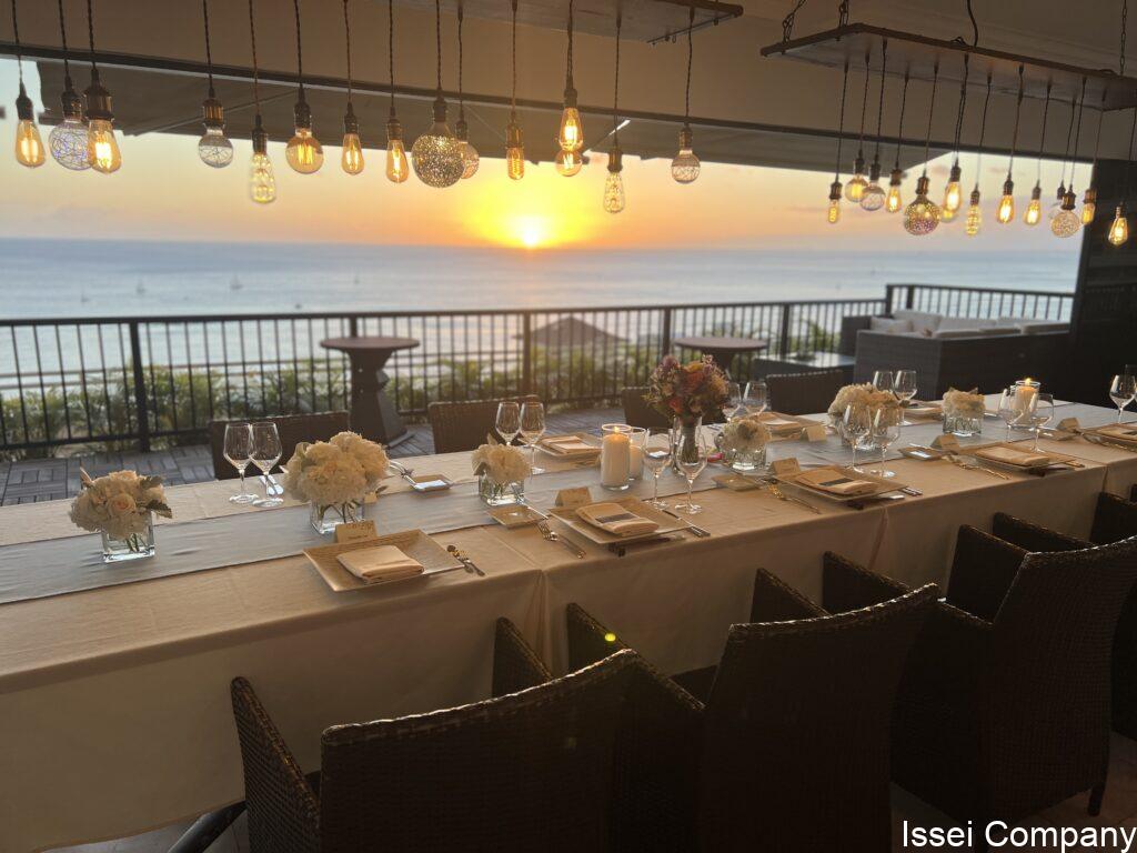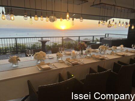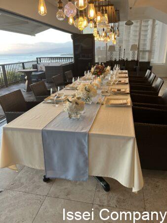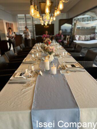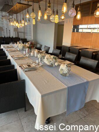 テーブル装飾は、クチュールナオコさん指定の、装花タイプB ブルーをチョイス。