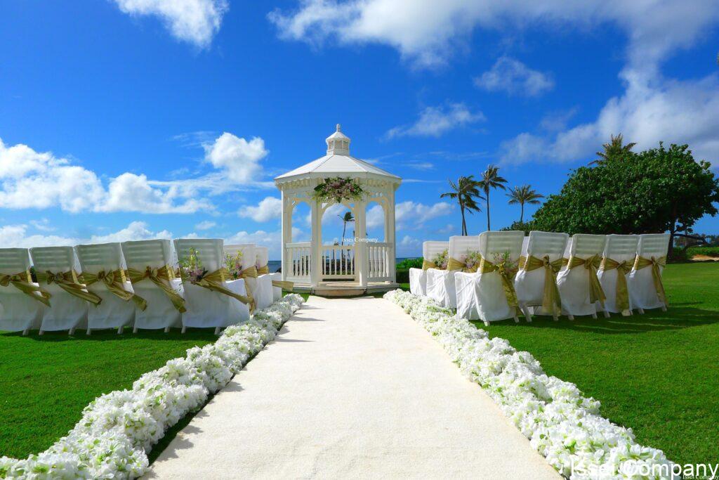 朝一番、色をぬったような青空だったのに、挙式直前にシャワーに見舞われましたが、