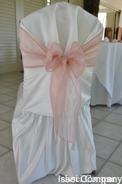 イスのカバーは白に、淡いピンクのサッシュです。
