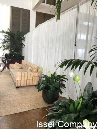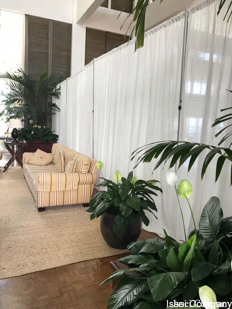 画像のような、白のカーテンがかかっており、本日は右半分のロビーの工事になっておりました。