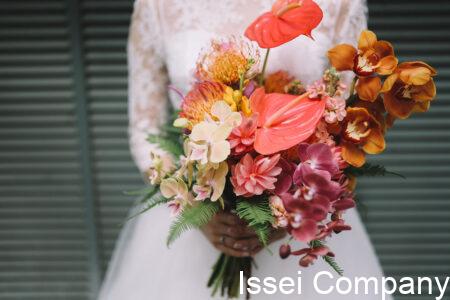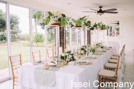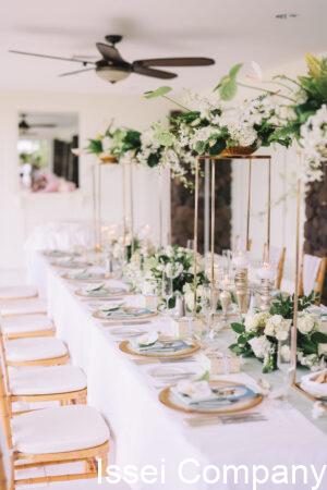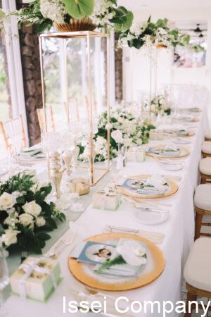 このような高さのある装飾は、とても人気があるのですが、向かい側の方のお顔が隠れるというデメリットもあります。