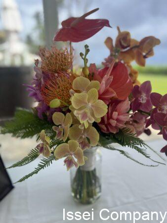 背の高い装花は、存在感があって人気がありますが、前の方が見えなくなるという大きな欠点があります。