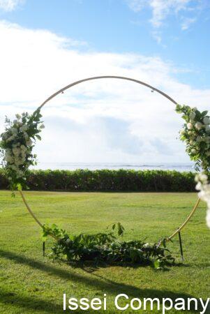 カハラの風の強さ、装花(豪華で大きい)を考慮し、2セットをアーバーを使って、強度を高めました。