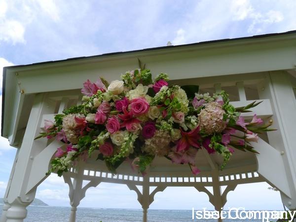 ガゼボ装花は、HPのカハラページのイメージと、色目で作成しました。