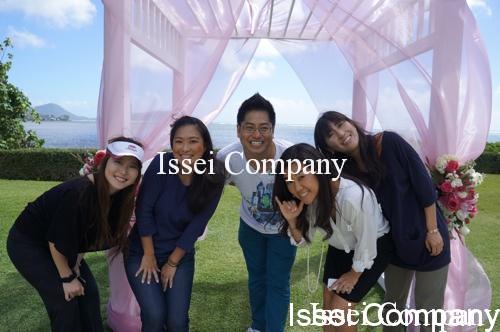 左から、イッセイカンパニーのマイちゃん。 フローリストグランドのジャスミンと、ジョセフ、カハラのユウコさんに、カメラマンのカヨちゃん。