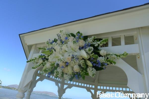 装花は白にブルー系。