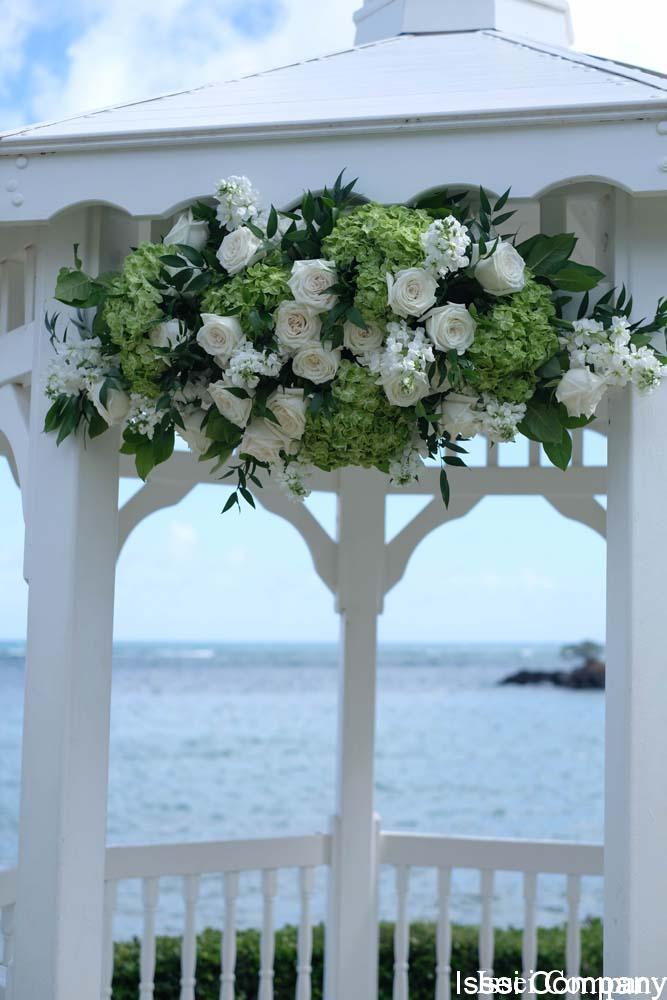 ネイビーのテーブルクロスに、マイコさんが、ゴールドのランナーと、キラキラのフォルダーに、装花を飾ってくれました。