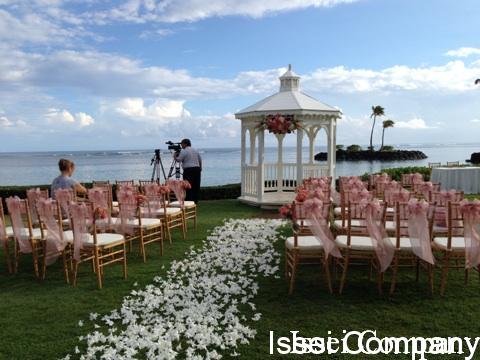 ガゼボ装花の色合いはコーラルピンク系でリクエストされました。