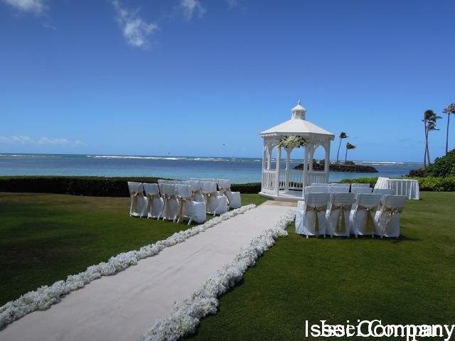 ホワイト・カーペット+シルクフラワー・バージンロードの王道セットアップです。