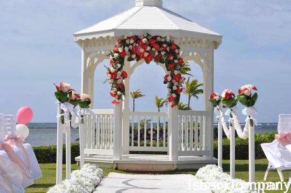 ガゼボの装飾は、赤系のトロピカルを、ゲート状に配したアップグレード版です。