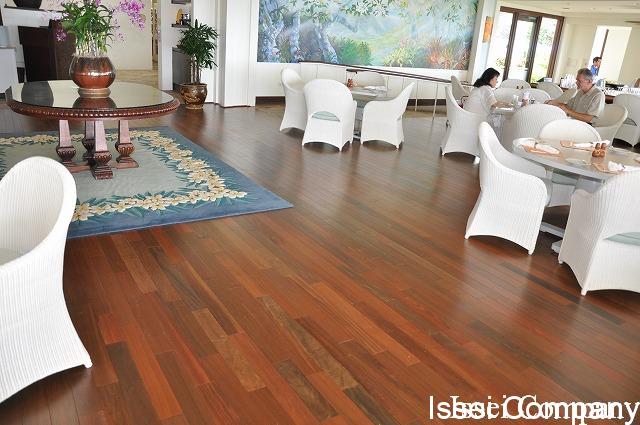 板張りの床になり椅子も肘掛つきの白い籐椅子になりました。カジュアルな雰囲気にエレガントさがプラスされました。