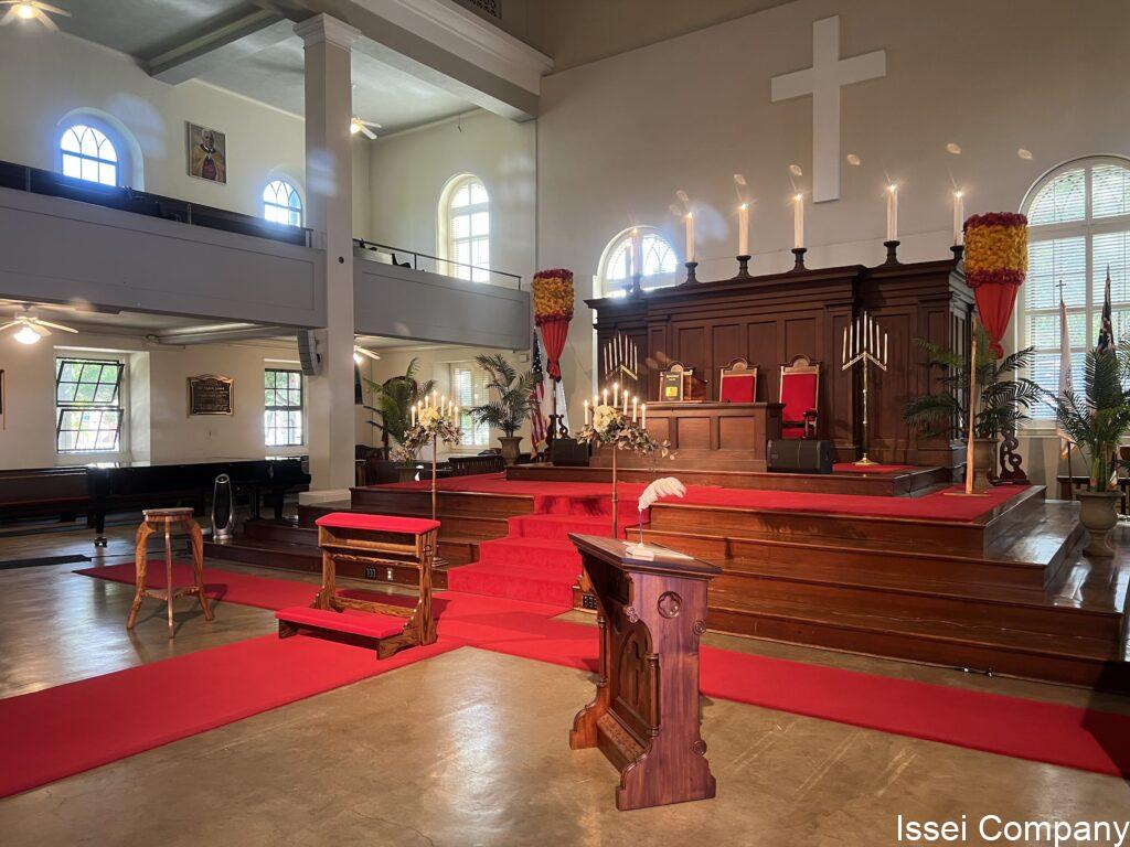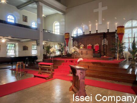 祭壇まわりも、ハワイアン的な装飾が多く、以下にも”ハワイの教会”という雰囲気です。