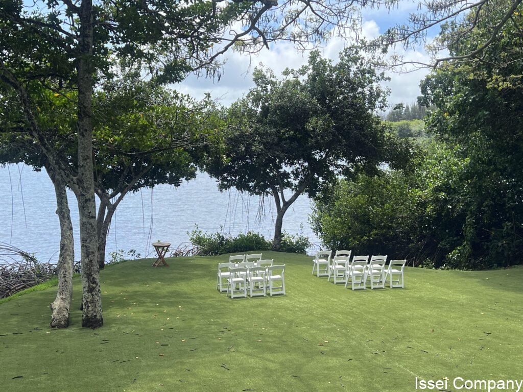 今回、お客様はシンプルな挙式スタイルをご希望で、椅子のセットのみのセッティングとなりました。