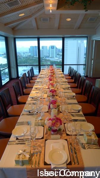 ●テーブルランナーやキャンドルと装花でこだわりデコレーション