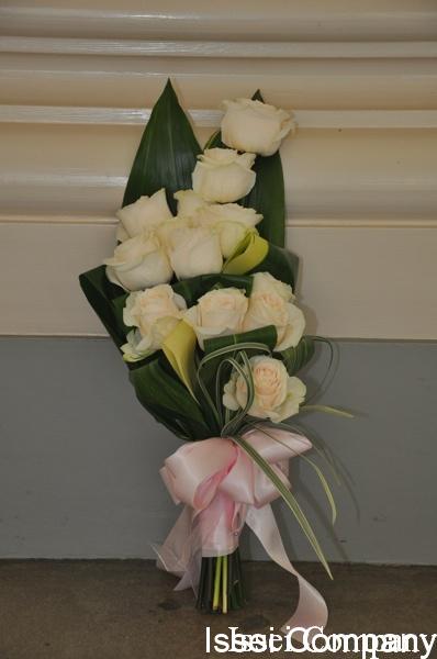 ブーケは、Grubb & Maiko, Designの白バラと、ティーリーフのクラッチ