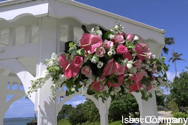 ガゼボのお花は、ピンク系で、トロピカルになりすぎないトロピカル(微妙ですね)です。