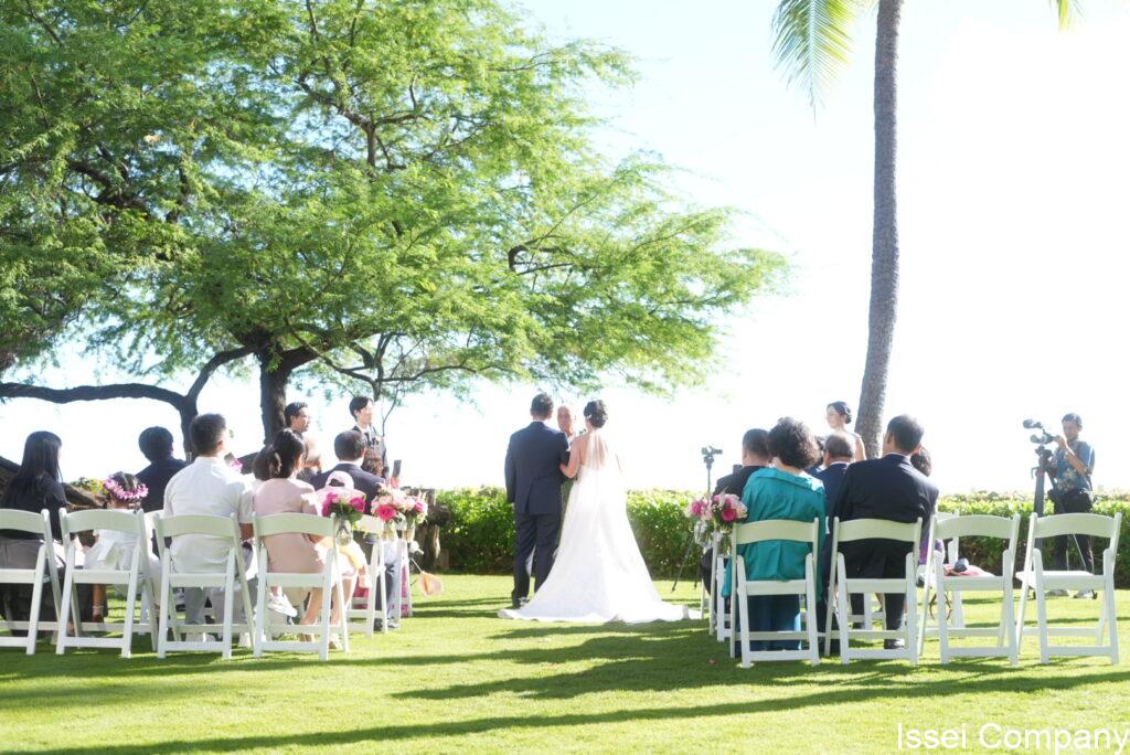 ハレクラニの海側の挙式会場、カヴェヘヴェヘ・オーシャン・ローンでのウェディング。