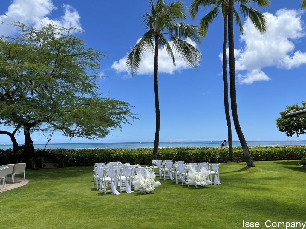 ハレクラニの最近人気の会場、カヴェヘヴェヘ・ローンでも撮影を行いました。