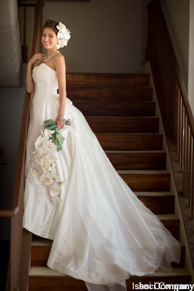 新郎新婦が、ラ・メール、オーキッズ、ハレクラニの宴会場でのレセプションを行う場合と、ハレクラニに宿泊の場合は、ラ・メール階段での撮影が許可される。