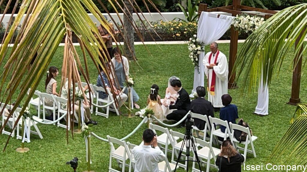 ハレクラニの、ガーデンコートヤードでの挙式。