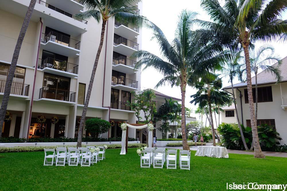 たっぷりとしたドレープと、白のオーキッドで飾りました。
