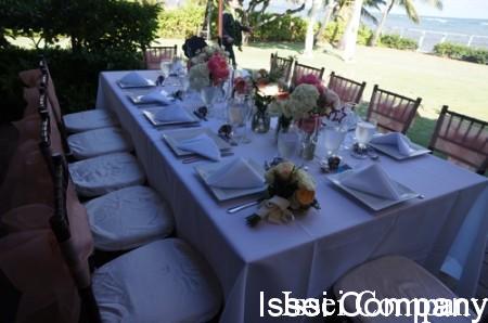 50名ほどのゲストの方だったのですが、ブライダルパーティ用に、テラスにテーブルをセットしました。