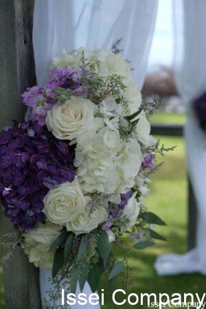 レセプションのテーブルも、同様の色目の装花で飾られました。
