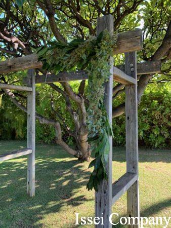 ガゼボの装飾は、アシンメトリーな配置に、グリーンのみを飾りました。