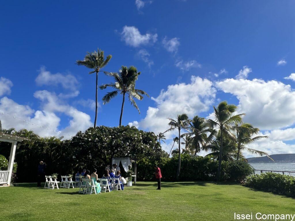 早朝からセットアップに余念がない、フローリストのブライダルフラワーさんチーム