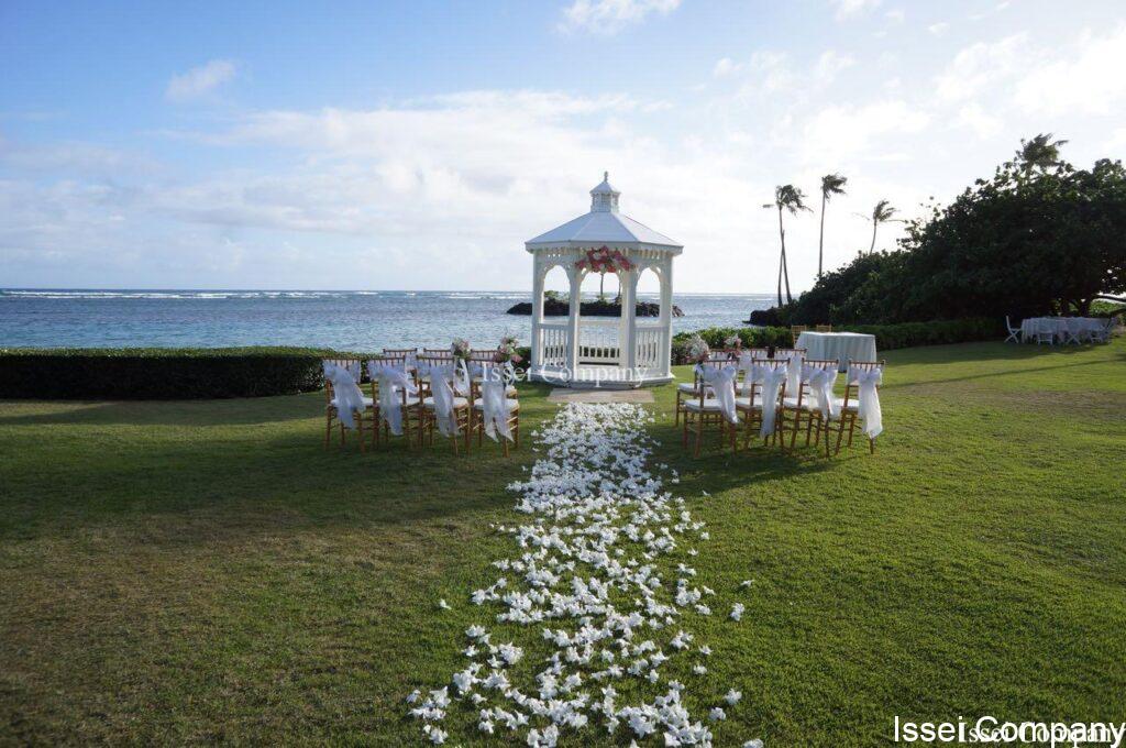 日の落ち着いたダイヤモンドガゼボで、しっとりと大人のウェディングです。