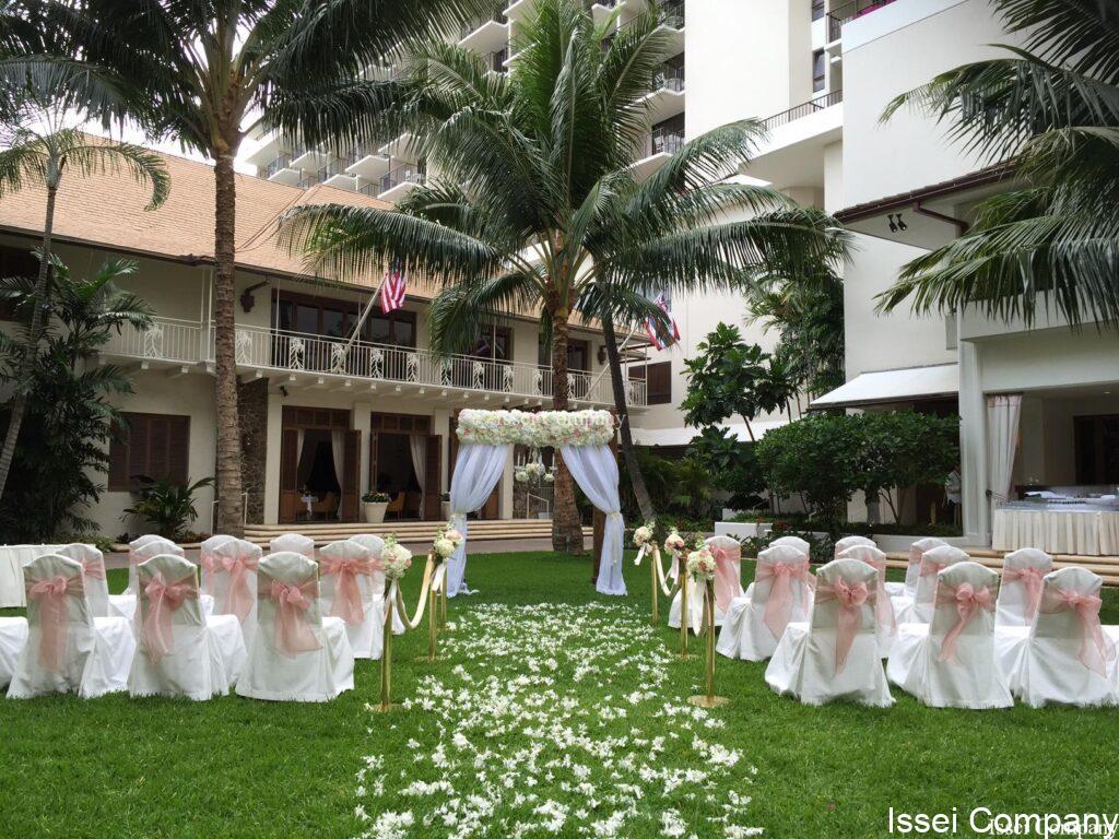 ハレクラニといえば、日本の方よりも、ローカル挙式の方が多いかと思いますが、今回の挙式は日本の方のウェディングでありながら、見事にアメリカン・ウェディングを実現されています。