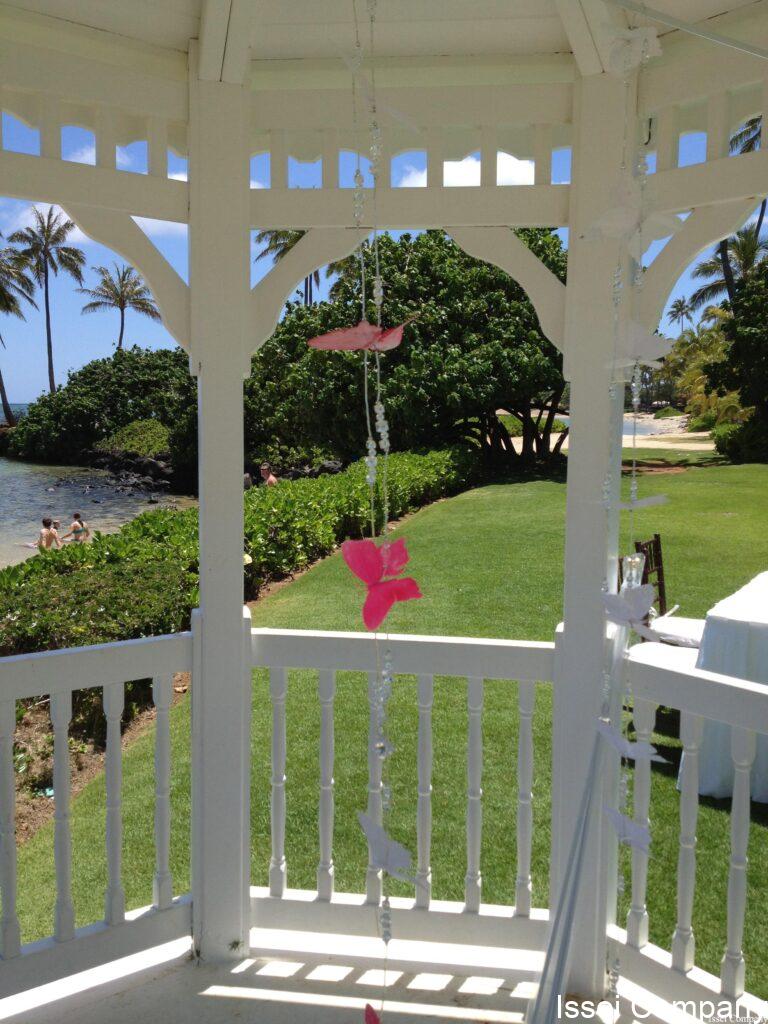 ガゼボとか、アーバーの内部に、クリスタルやバタフライの飾りをつけるリクエストを良く頂きます。