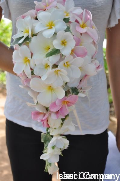 ブーケは、グラブ&マイコさん製作の、プルメリアのスリムキャスケード。
