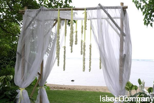 バンブーアーバーには、白のお花に黄色のリボンです。