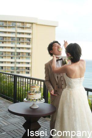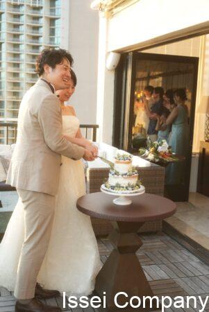 テラスでのウェディング・ケーキカット