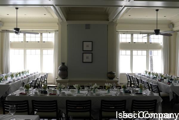 グランドサルーン(室内)に、u字型にテーブルセッティング