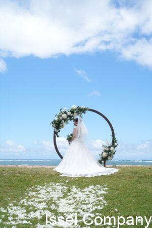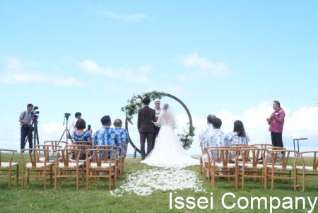 挙式風景の画像ですが、エバ地区はオアフ島の中でも、降雨量が一番少なく、安定した天候が期待できます。