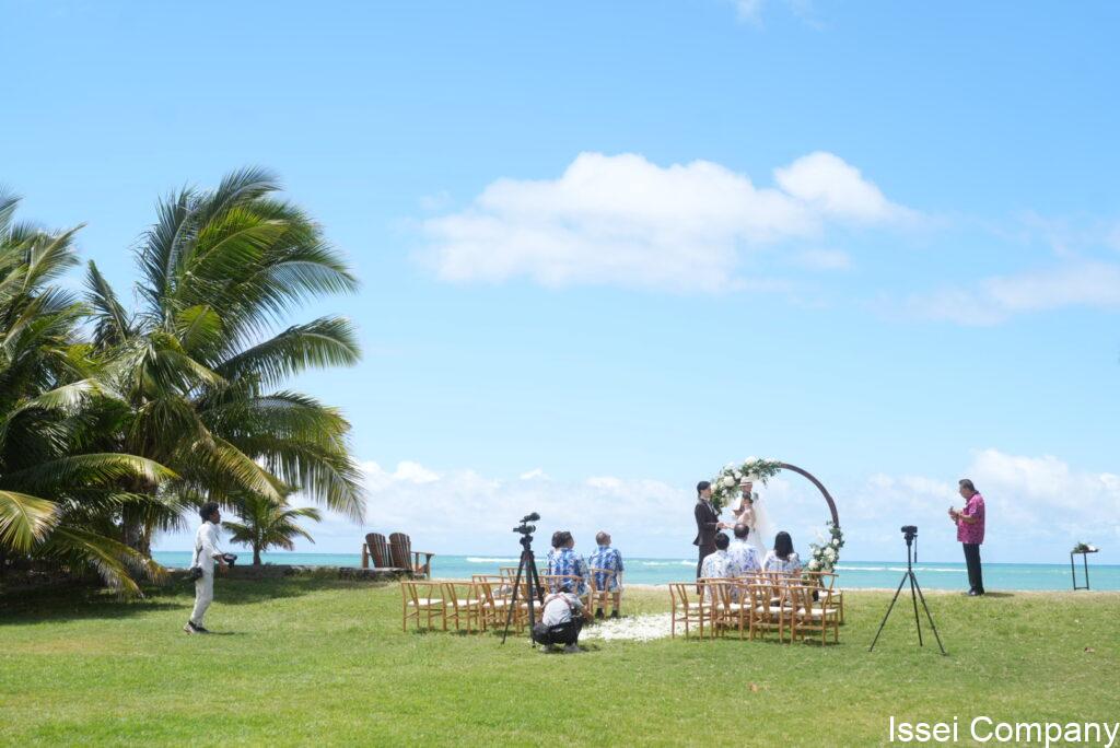 実は、この日も少し離れたカポレイ地区は雨模様だったようですが、ポハクプナの挙式会場は、ご覧のように青空でした。