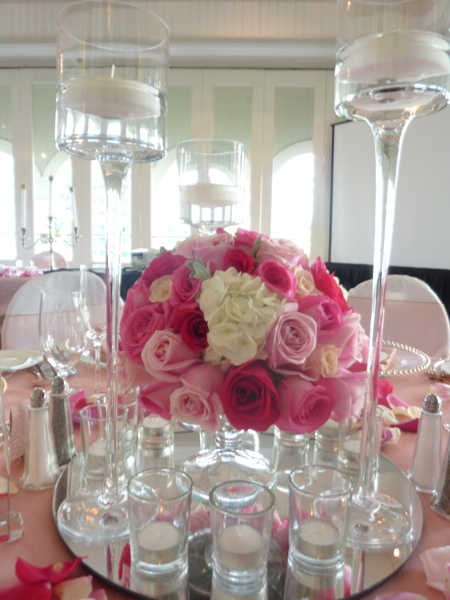 ゲストテーブル用の装花は、あいさんのケーキスタンドの上にまいこさんがお花を飾ってくれました。