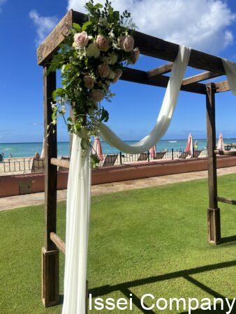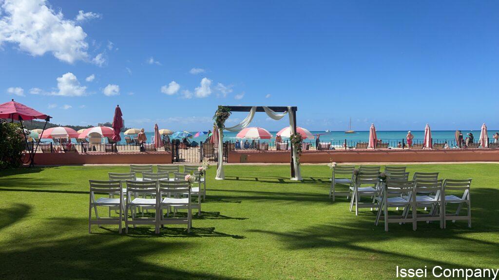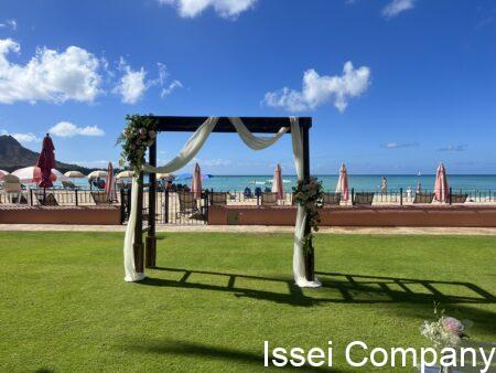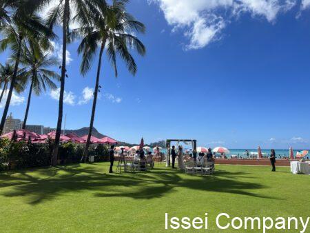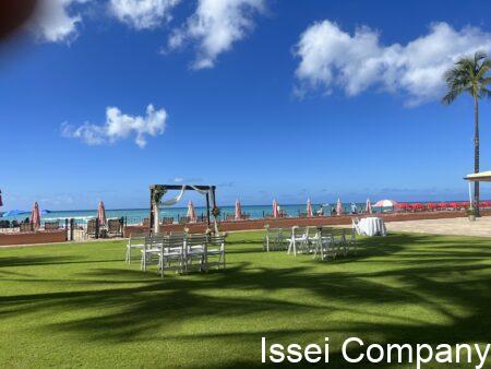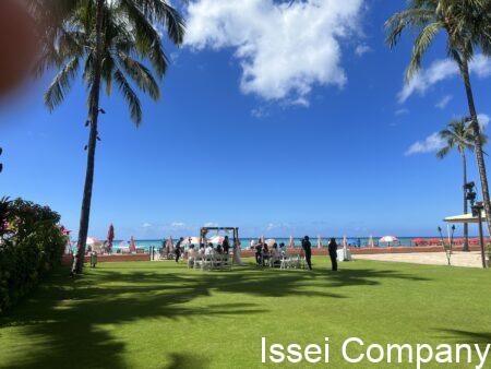 ロイヤルハワイアンの、オーシャンローンでのウェディングです。