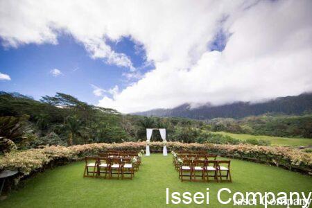 ちょっと分かりにくいですが、フラワーポットを、バージンロード手前に差し込んだオプション商品の画像